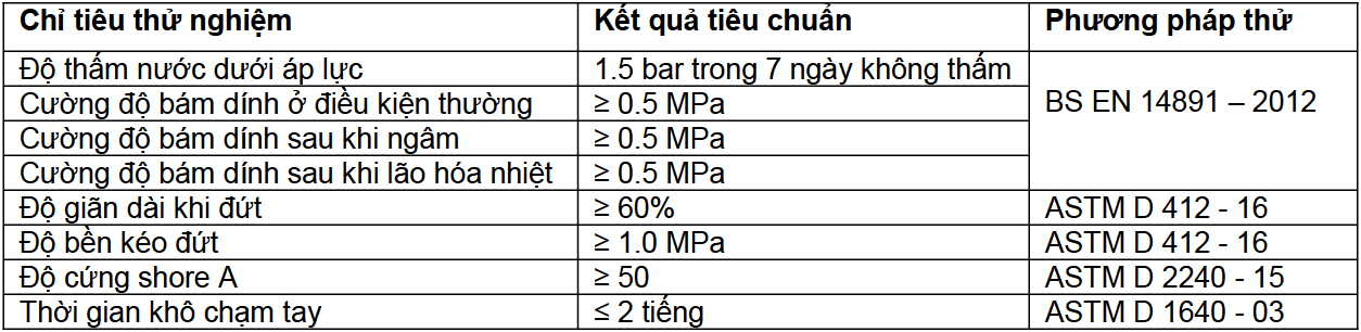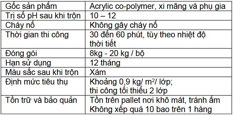 - Thi công tối thiểu là 2 lớp để có thể đạt được độ dày và hiệu quả chống thấm