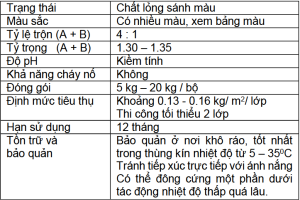 - Cho toàn bộ thành phần B vào thùng chứa thành phần A và trộn trong vòng 3 phút. Thêm khoảng 5 – 10% nước sạch để điều chỉnh độ nhớt cho thích hợp để thi công. Để cho hỗn hợp nghỉ và tan bớt bọt, sau đó khuấy nhẹ trở lại rồi thi công.