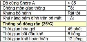 - Rửa sạch với toulene hoặc acetone ngay sau khi thi công · Khi đã đông cứng chỉ có thể loại bỏ bằng cơ học.