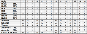 Thông số kháng hóa chất + : kháng A : xâm hại D : phá hủy