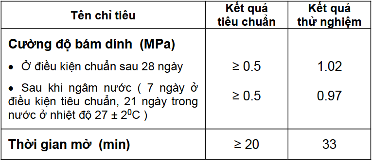 – Thời gian cho phép vữa thi công tối đa là 30 phút