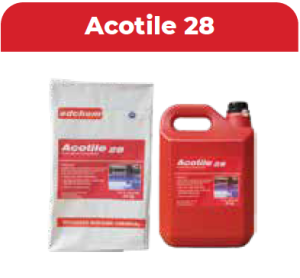Acotile 28 là sản phẩm keo dán gạch 2 thành phần gốc xi măng và Polymer. Sau khi trộn sẽ tạo thành một hỗn hợp sệt và đồng nhất được ứng dụng để dán gạch và trám ron.